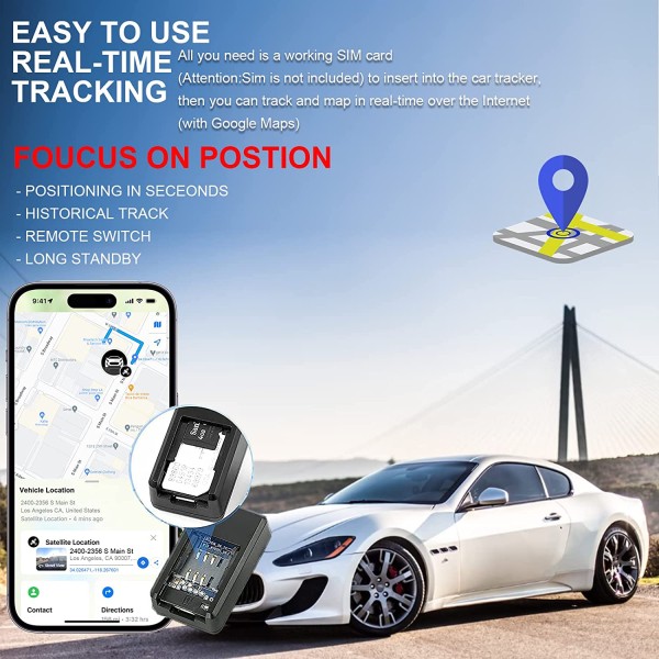 【Fácil de usar】Todo lo que necesitas es una tarjeta SIM de trabajo (atención: la SIM no está incluida) para insertar en el rastreador del coche, entonces puedes rastrear y mapear (con Google Maps) en tiempo real a través de Internet.